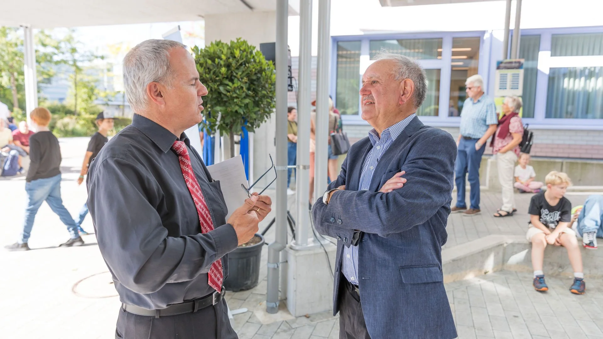 Dr. Hans Hollenstein, a. Regierungsrat Kanton Zürich. Gespräch mit unserem Präsidenten an einer Rangverkündigung am OSEW 2025.