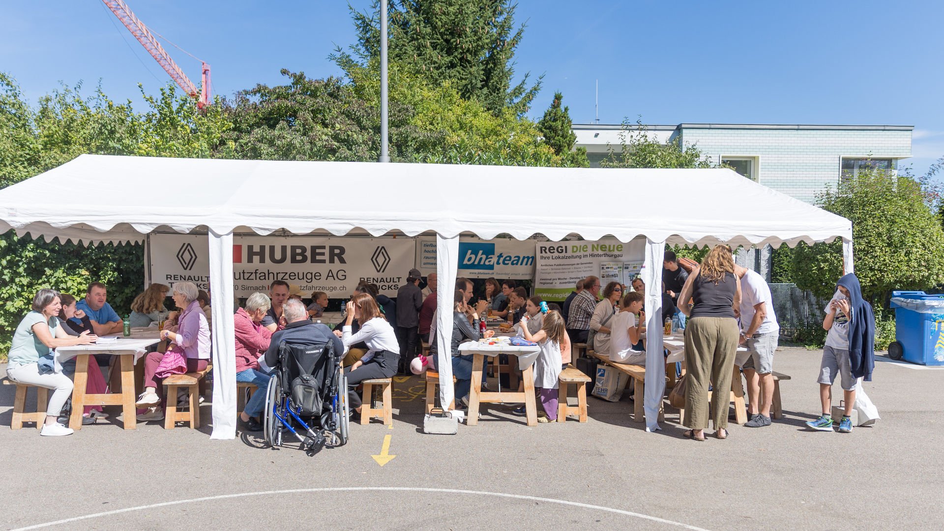 Auf dem Pausenplatz Grünau wird Samstag und Sonntag eine Festwirtschaft betrieben. Lassen Sie sich verwöhnen vom Gipfeli bis zum Schnitzelbrot.