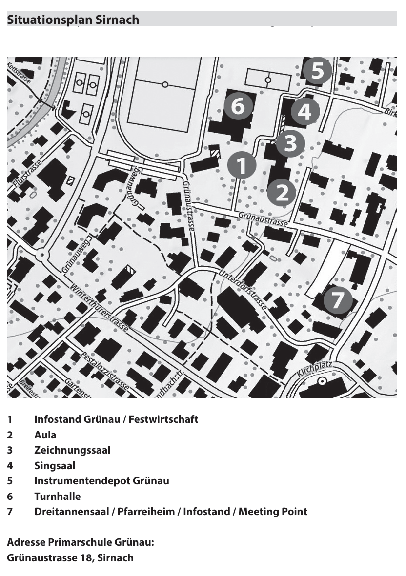 Schliesslich steht der Wettbewerbstag (Samstag oder Sonntag) vor der Tür und alle Teilnehmenden strömen nach Sirnach. Parkplätze sind gewährleistet und deren Verortung findet sich im Plan weiter unten auf dieser Seite.